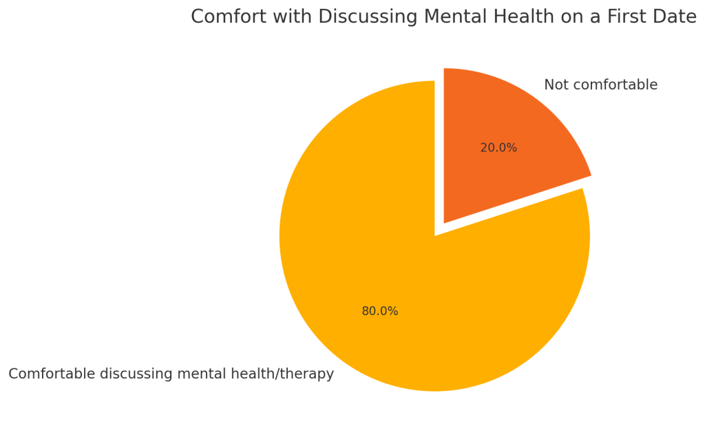 セラピーが密室でささやかれていた時代は遠い昔となった。今日、私たちは自分の葛藤や不安、感情的な幸福についてオープンに話すことを厭わず、初デートの会話を一変させつつある。その ソウルマッチャー 調査によると 80%の回答者が、初デートでメンタルヘルスやセラピーについて話すことに抵抗がない。受容と理解への大きな文化的変化を反映している。