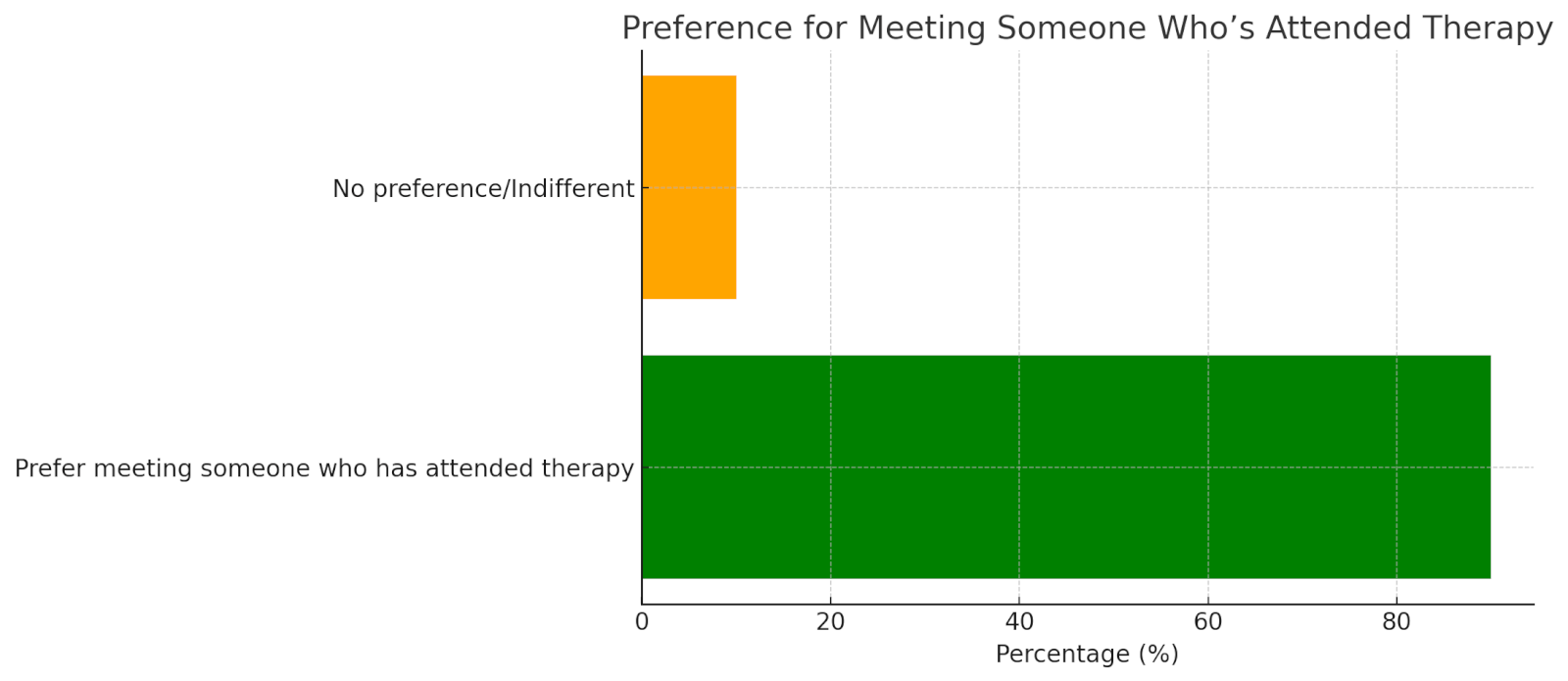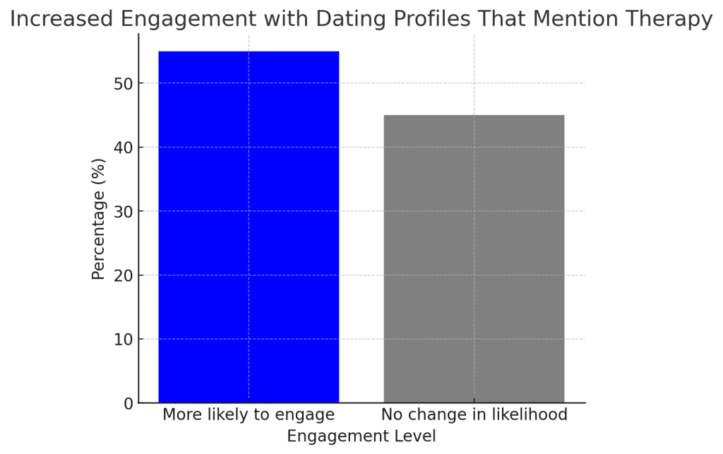 セラピーに通っていることをオープンに認めれば、オンライン・デートのプロフィールの魅力もアップする。によると ソウルマッチャー のデータがある、 55%のユーザーがセラピーに言及したプロフィールに関与する可能性が高いそして、驚異的な 90% は、過去にセラピーを受けたことのある人と出会いたいと答えている。この数字は、メンタルヘルスを維持することが不利益ではなく、むしろ魅力的な資質とみなされる世界的な傾向の高まりを反映している。