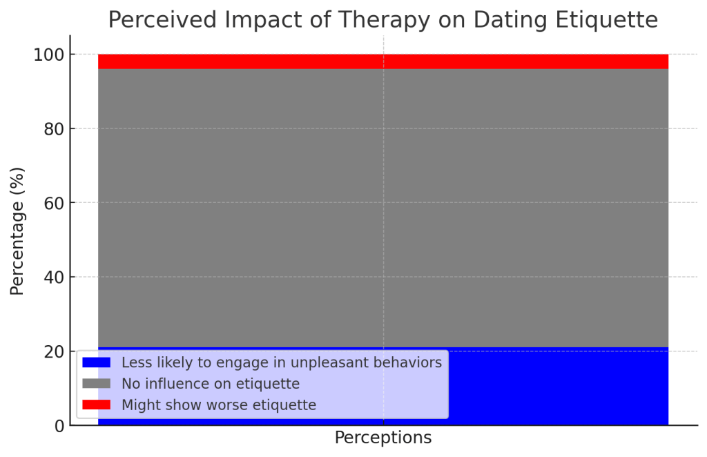 セラピーを受ければ、ロマンチックな出会いの場でもより良い振る舞いができるようになると考える人もいるかもしれない。結局のところ、セラピーはしばしばコミュニケーション・スキル、共感、感情調節を教える。によれば ソウルマッチャー という調査を行った、 21%の参加者が、セラピーを受けた人はゴーストのような不快なデート行動に出る可能性が低いと考えている。.