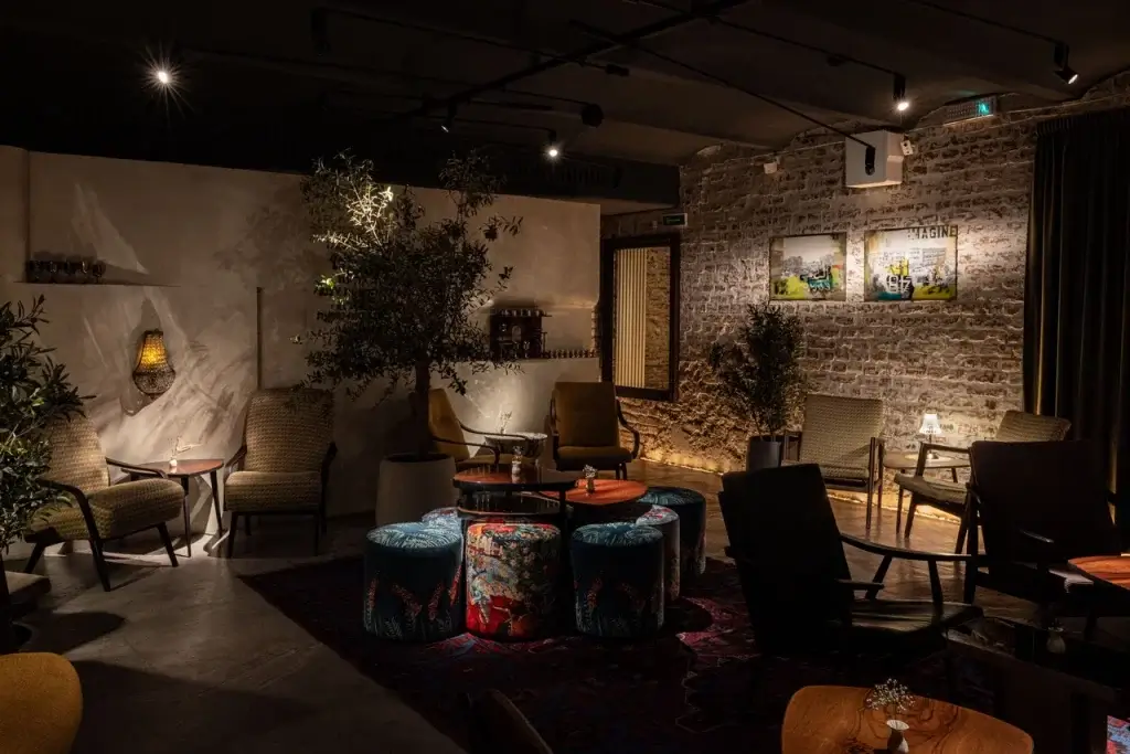 Еще один подвал без окон, но внутри стоит живое оливковое дерево - фирменное блюдо этого заведения в тель-авивском стиле. Шеф-повар Григорий Чунихин предлагает такие блюда, как жареный чеснок, сырая сечка и питтима. За занавеской находится мини-бар на 15 мест с ближневосточными коктейлями.
